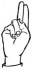 На ћирилици написано МИХАЈЛО УЛЕМЕК састоји се из 13 слова [?]. Исписано ћириличном једноручном азбуком за глувонеме: